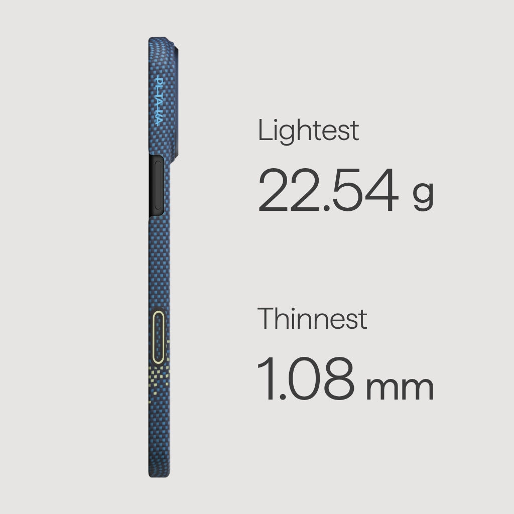 Suteikite savo „iPhone“ neprilygstamą eleganciją ir apsaugą naudodami itin ploną ir lengvą telefono dėklą, suderinamą su „MagSafe“. Dėklas sukurtas naudojant kosminės pramonės kokybės aramidinį pluoštą – medžiagą, kuri užtikrina išskirtinį tvirtumą bei estetiką. Toks plonumas ir lengvumas yra tarsi nematomas, leidžiantis mėgautis natūraliu telefono išvaizda bei naudoti jį be papildomo masės jausmo.
