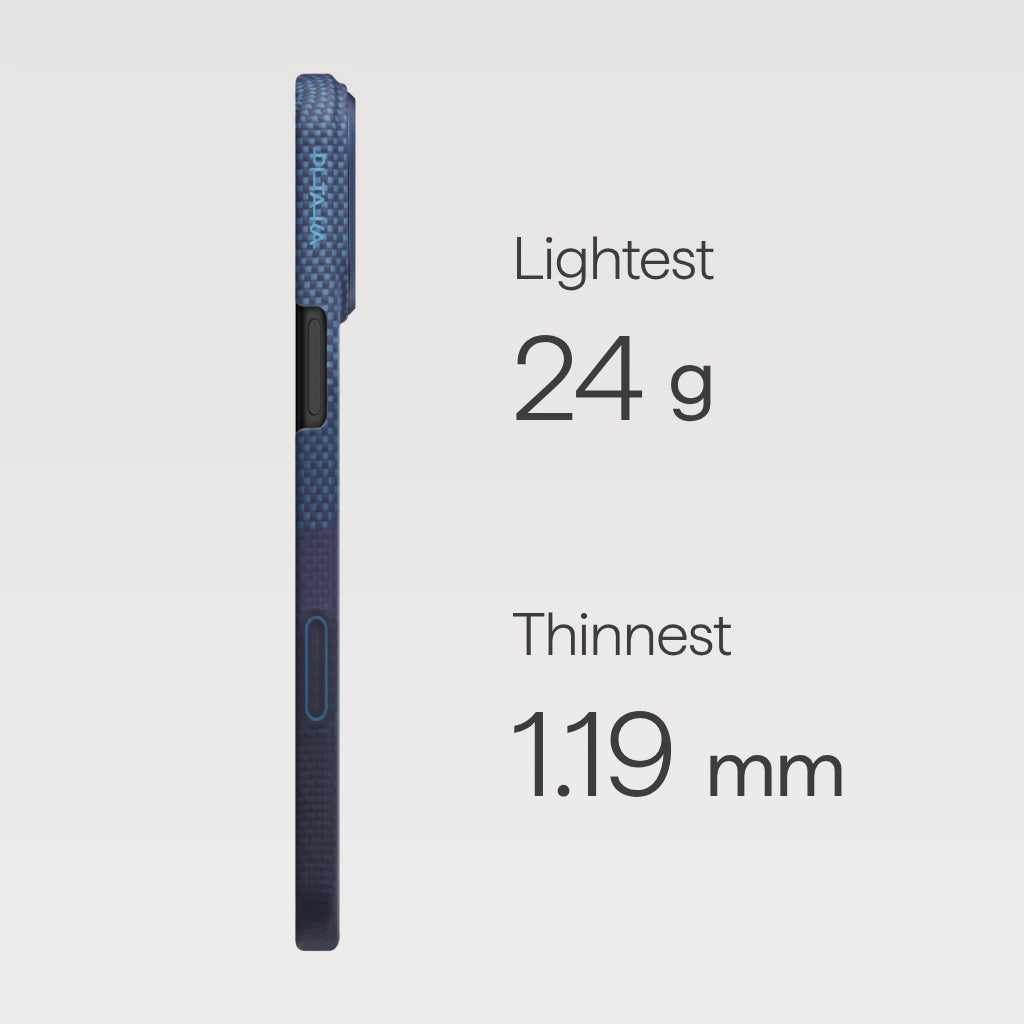 Suteikite savo „iPhone“ neprilygstamą eleganciją ir apsaugą naudodami itin ploną ir lengvą telefono dėklą, suderinamą su „MagSafe“. Dėklas sukurtas naudojant kosminės pramonės kokybės aramidinį pluoštą – medžiagą, kuri užtikrina išskirtinį tvirtumą bei estetiką. Toks plonumas ir lengvumas yra tarsi nematomas, leidžiantis mėgautis natūraliu telefono išvaizda bei naudoti jį be papildomo masės jausmo.